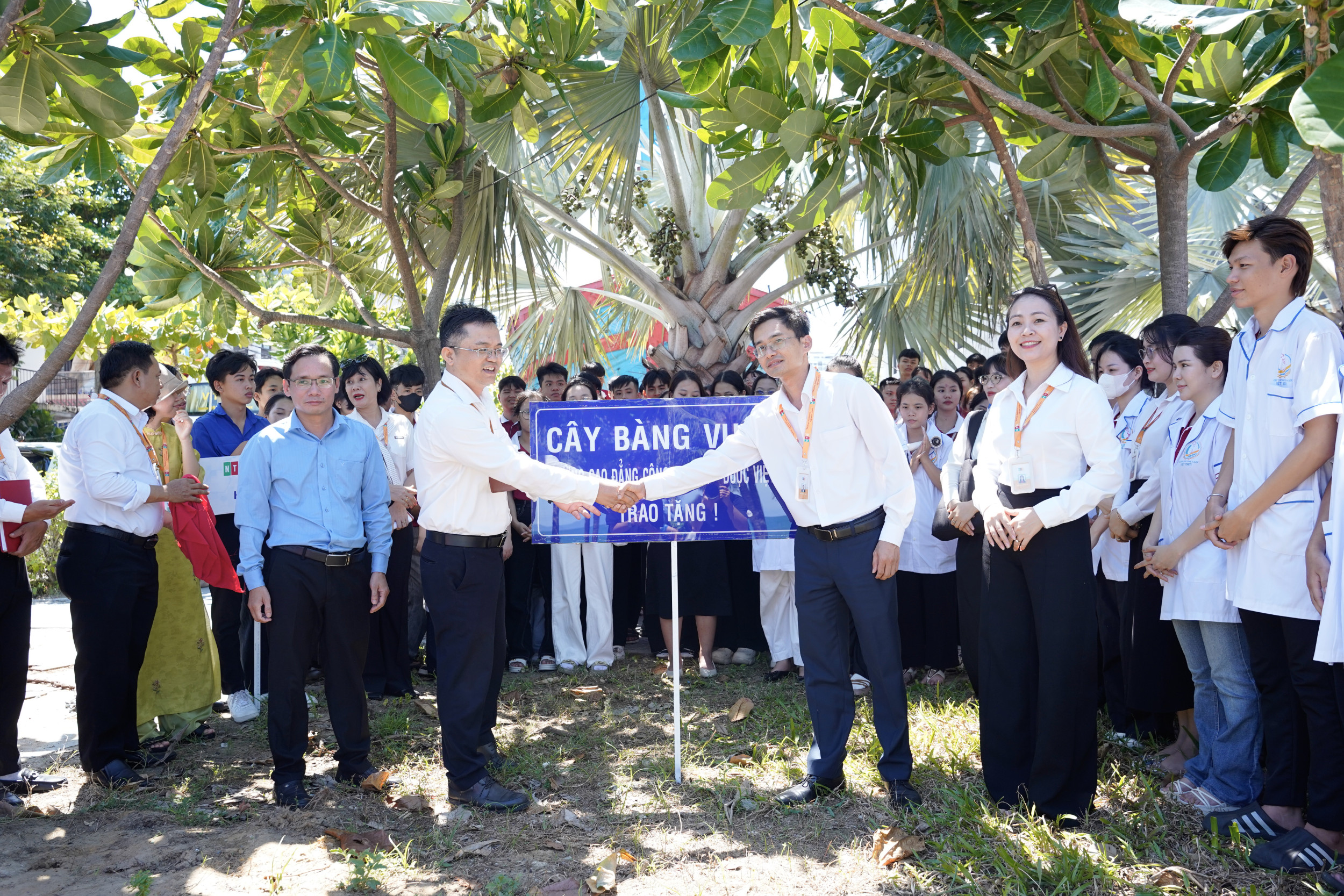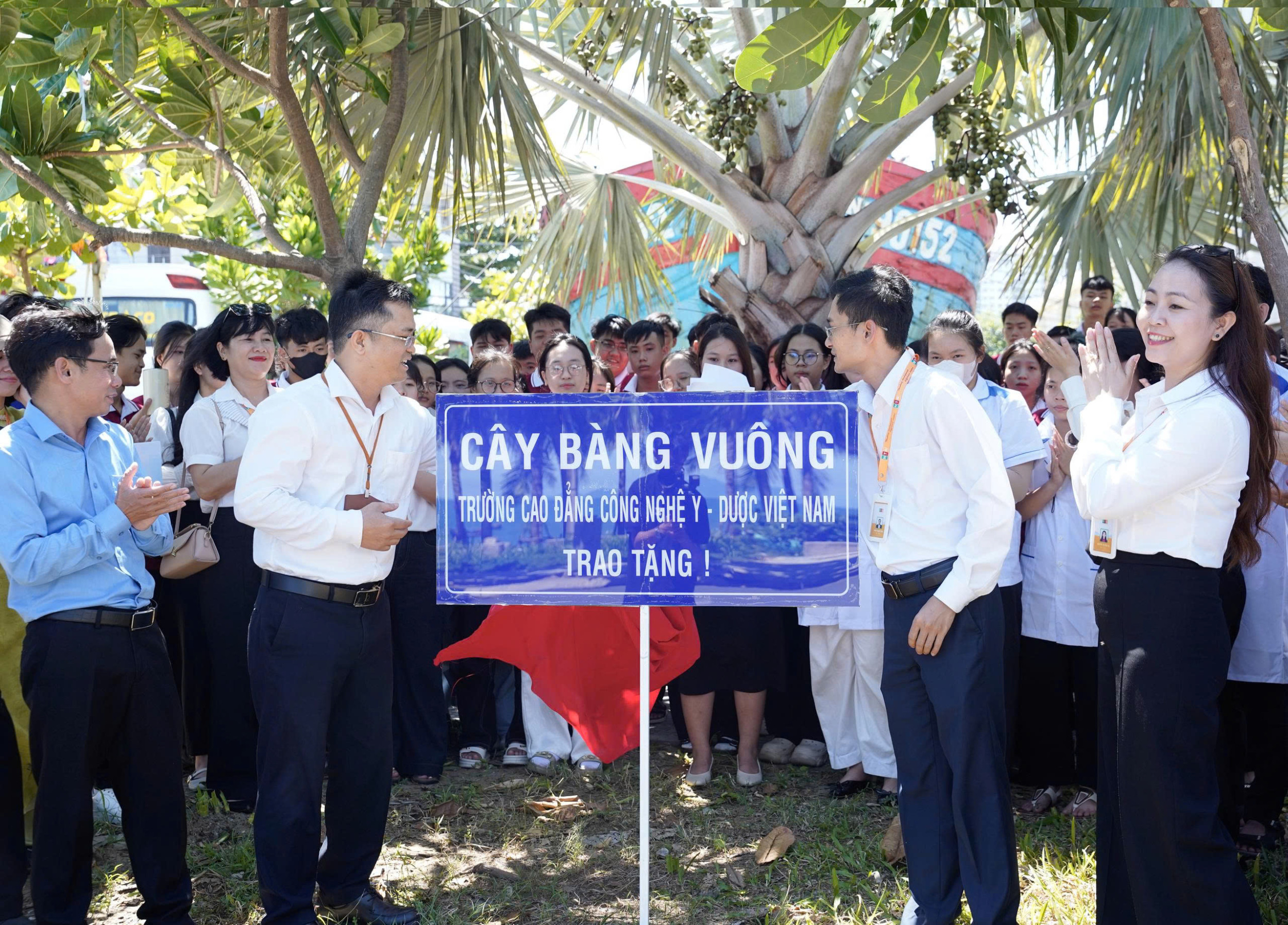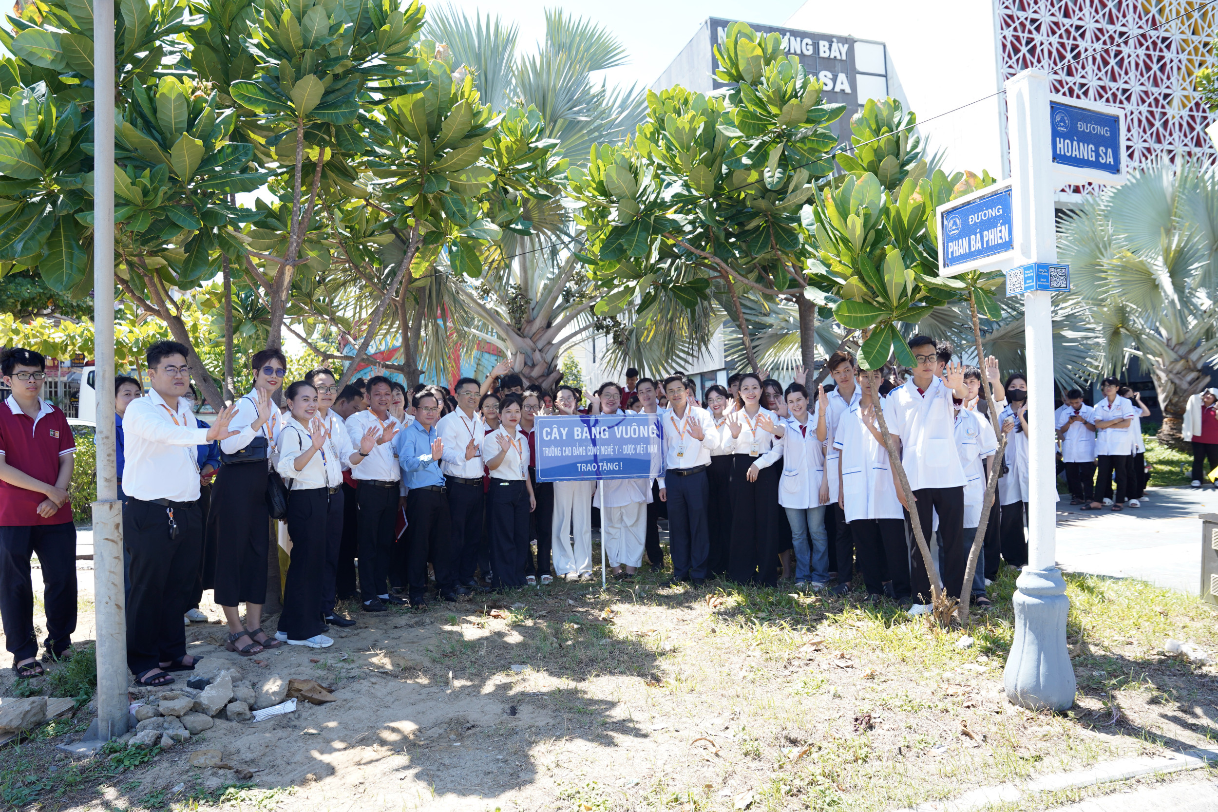 Điểm nhấn của chương trình là “Lễ đặt biển tên” cho những cây bàng vuông mà Nhà trường gửi tặng Nhà trưng bày Hoàng Sa từ tháng 4/2022. Sau 3 năm chăm sóc, cây đã vươn xanh khỏe mạnh – như biểu tượng của sức sống Hoàng Sa. Việc đặt biển tên một lần nữa khẳng định thông điệp giáo dục: tình yêu Tổ quốc và ý thức chủ quyền không chỉ nằm ở khẩu hiệu, mà cần được gieo trồng và nuôi dưỡng bằng những hành động bền bỉ, thiết thực.